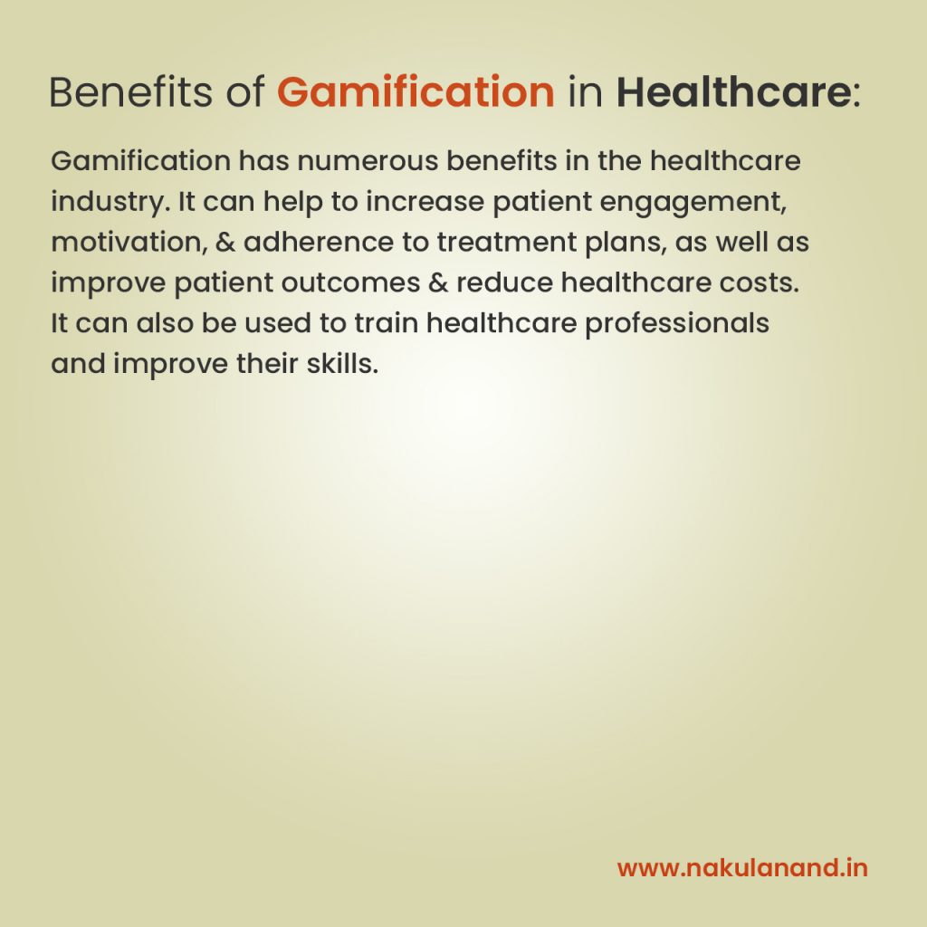 Gamification has numerous benefits in the healthcare industry. It can help to increase patient engagement, motivation, and adherence to treatment plans, as well as improve patient outcomes and reduce healthcare costs. It can also be used to train healthcare professionals and improve their skills.